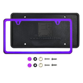Frame Ai Two Hole Slim Version Purple Chrome Mirror License Plate Frame T304 Stainless Steel + Metal Screw Caps