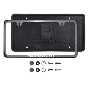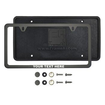 FrameAi Laser Etching Customize Matte Flat Black License Plate Frame Compatible with GMC Safari T304 Stainless Steel + Metal Screw Caps