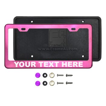 FrameAi Laser Etching Customize Two Hole Slim Version Raspberry Pink Chrome License Plate Frame Compatible with GMC Sierra T304 Stainless Steel + Metal Screw Caps
