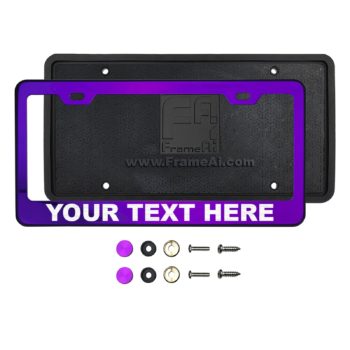 FrameAi Laser Etching Customize Two Hole Slim Version Purple Chrome Mirror License Plate Frame Compatible with GMC Sonoma T304 Stainless Steel + Metal Screw Caps