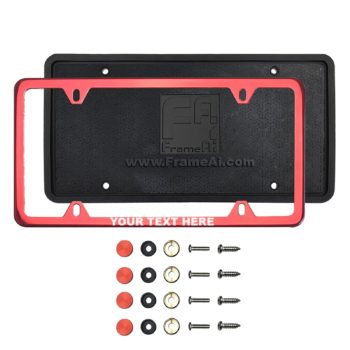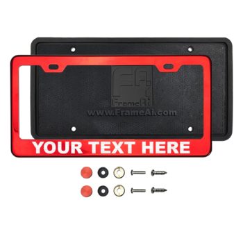 FrameAi Laser Etching Customize Red Chrome Mirror License Plate Frame Compatible with GMC Acadia T304 Stainless Steel + Metal Screw Caps