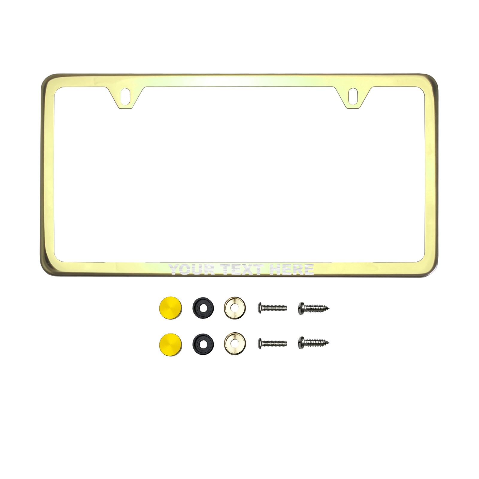Frame Ai Laser Etching Customize Laser Etching Customize Two Hole Slim Version Gold Chrome Polish Mirror License Plate Frame T304 Stainless Steel + Metal Screw Caps