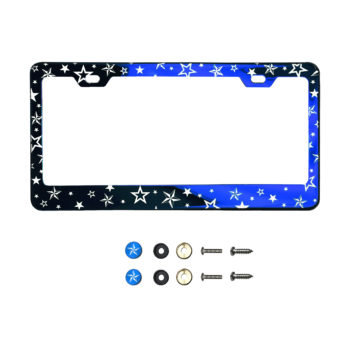 • Laser Etched Custom Personalized license plate frame with 2 aluminum metal twist on screw caps, you can either insert the metal washer for dry weather condition or insert the plastic washer for snowing or bay area weather condition