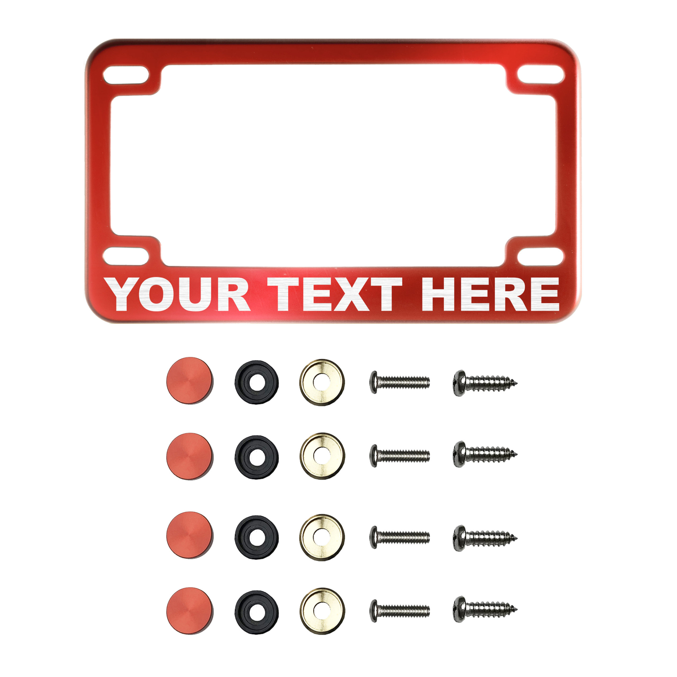 - Laser Etched Custom Personalized license plate frame with 4 aluminum metal twist on screw caps, you can either insert the metal washer for dry weather condition or insert the plastic washer for snowing or bay area weather condition
