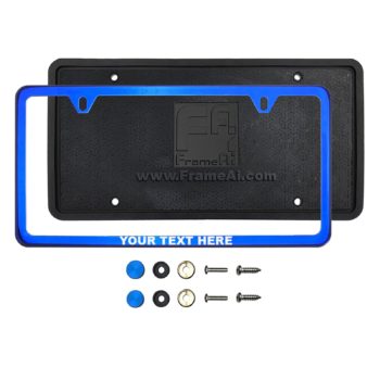 FrameAi Laser Etching Customize bottom Corner Cut Out Version Blue Chrome Mirror License Plate Frame Compatible with GMC Savana T304 Stainless Steel + Metal Screw Caps