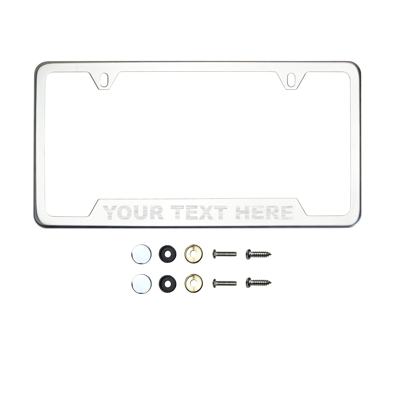 FrameAi Laser Etching Customize bottom Corner Cut Out Version Chrome Polish Mirror License Plate Frame T304 Stainless Laser Etching Customize nless Steel + Metal Screw Caps