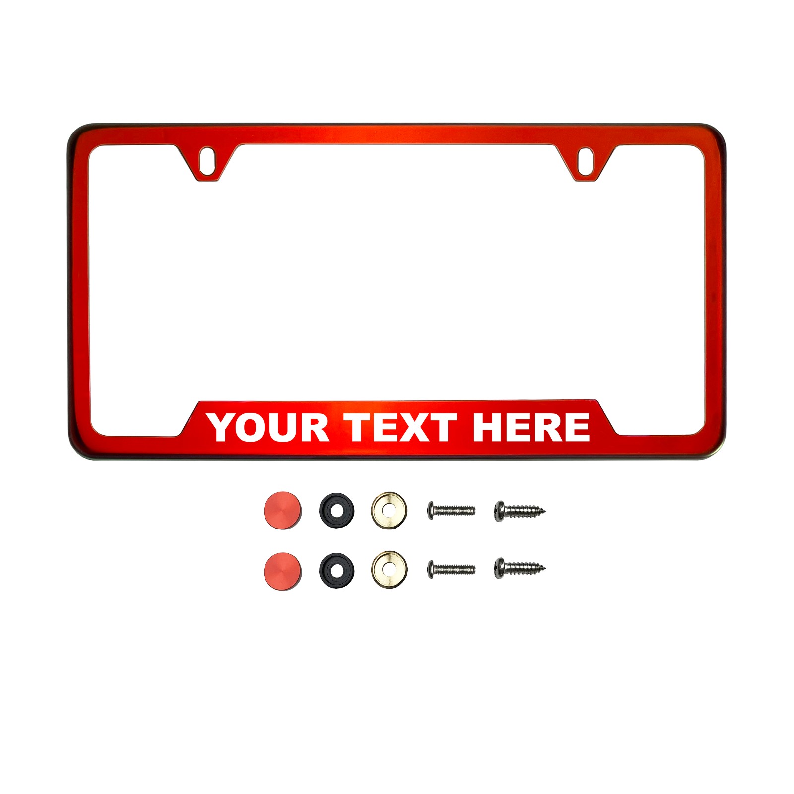 FrameAi Laser Etching Customize bottom Corner Cut Out Version Red Chrome Mirror License Plate Frame T304 Stainless Laser Etching Customize nless Steel + Metal Screw Caps