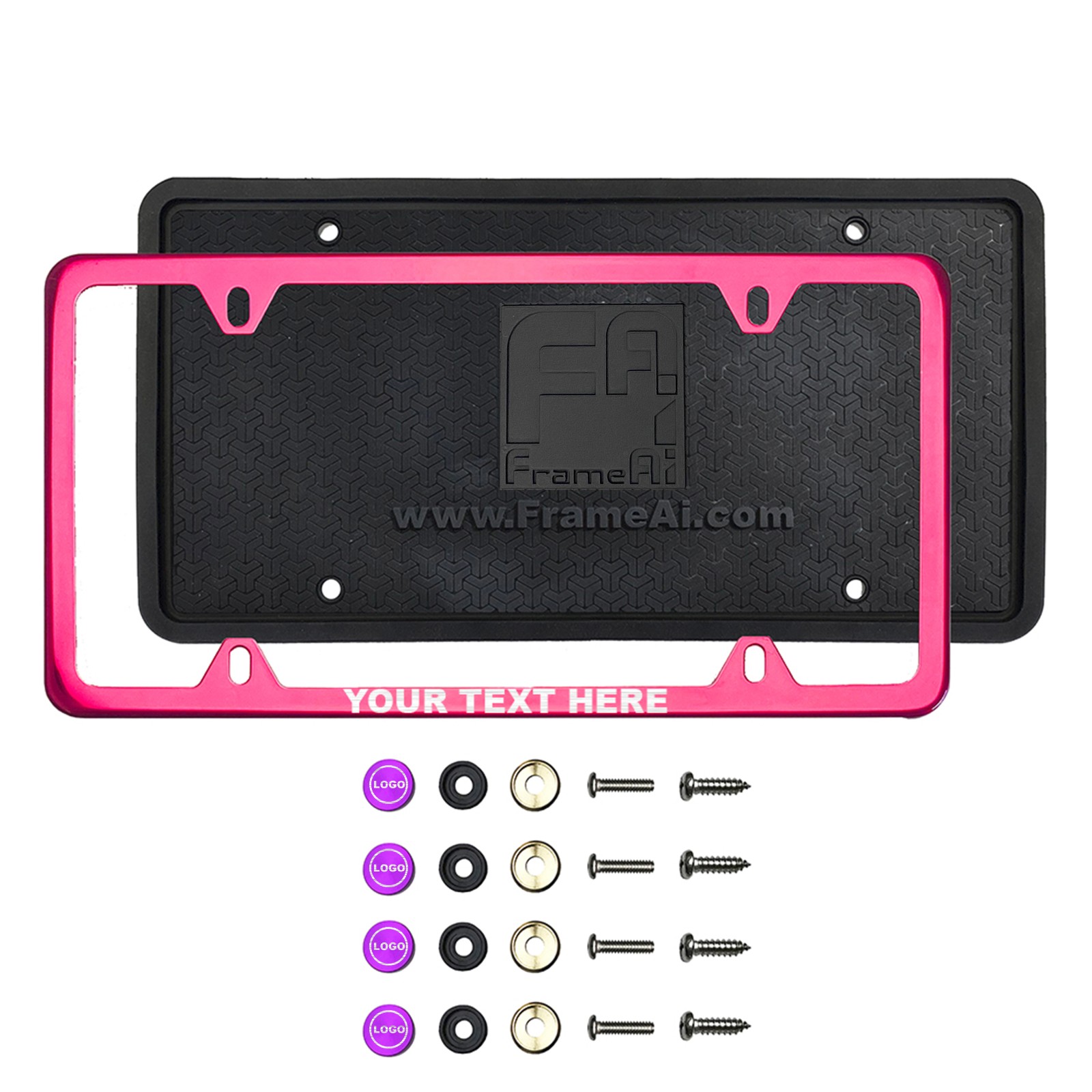 FrameAi Laser Etching Customize Four Hole Slim Version Raspberry Pink Chrome License Plate Frame Compatible with GMC Sonoma T304 Stainless Steel + Metal Screw Caps
