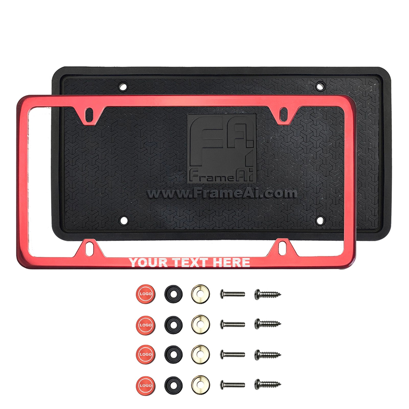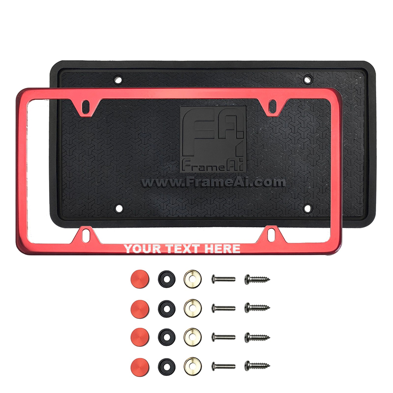 FrameAi Laser Etching Customize Four Hole Slim Version Red Chrome Mirror License Plate Frame Compatible with GMC Yukon T304 Stainless Steel + Metal Screw Caps