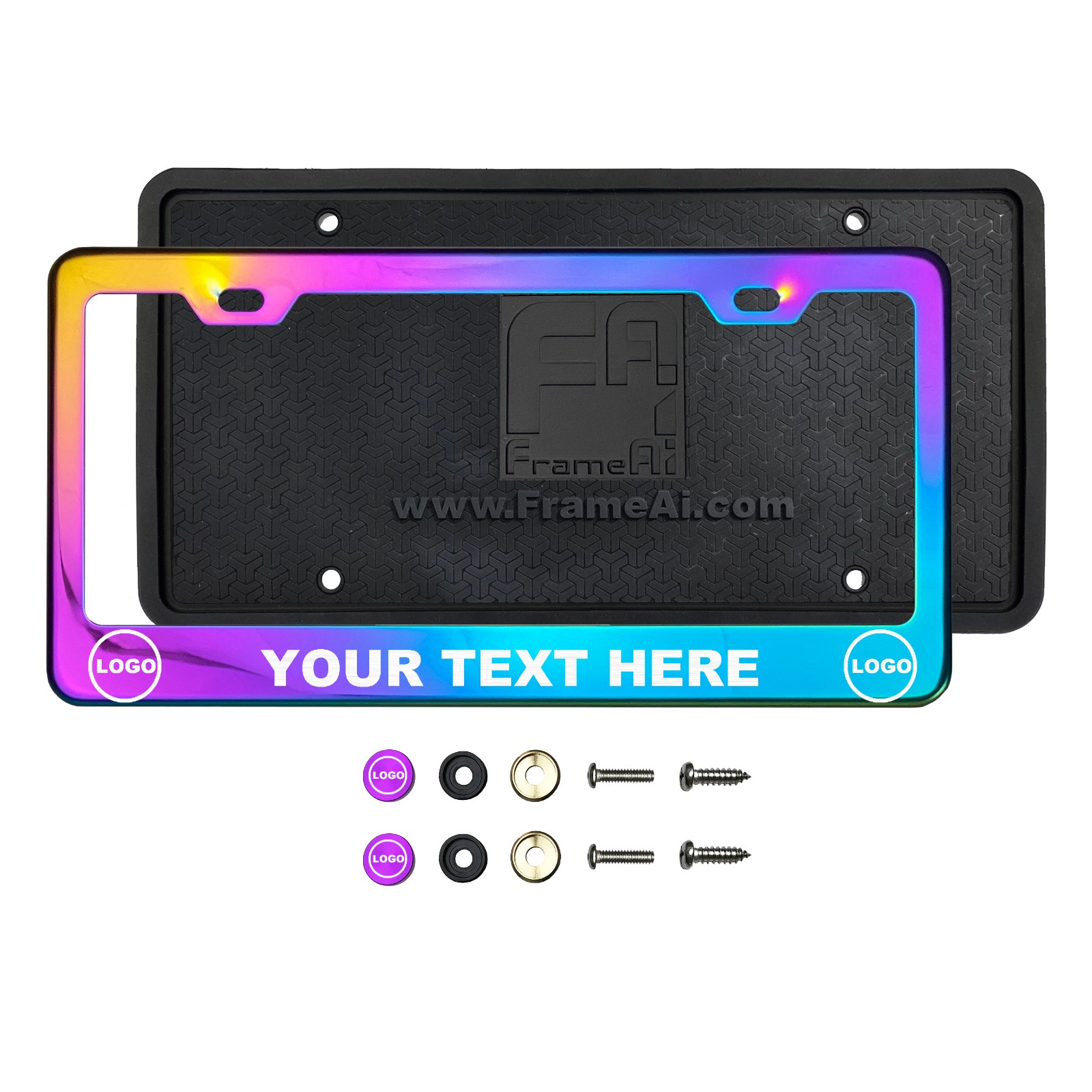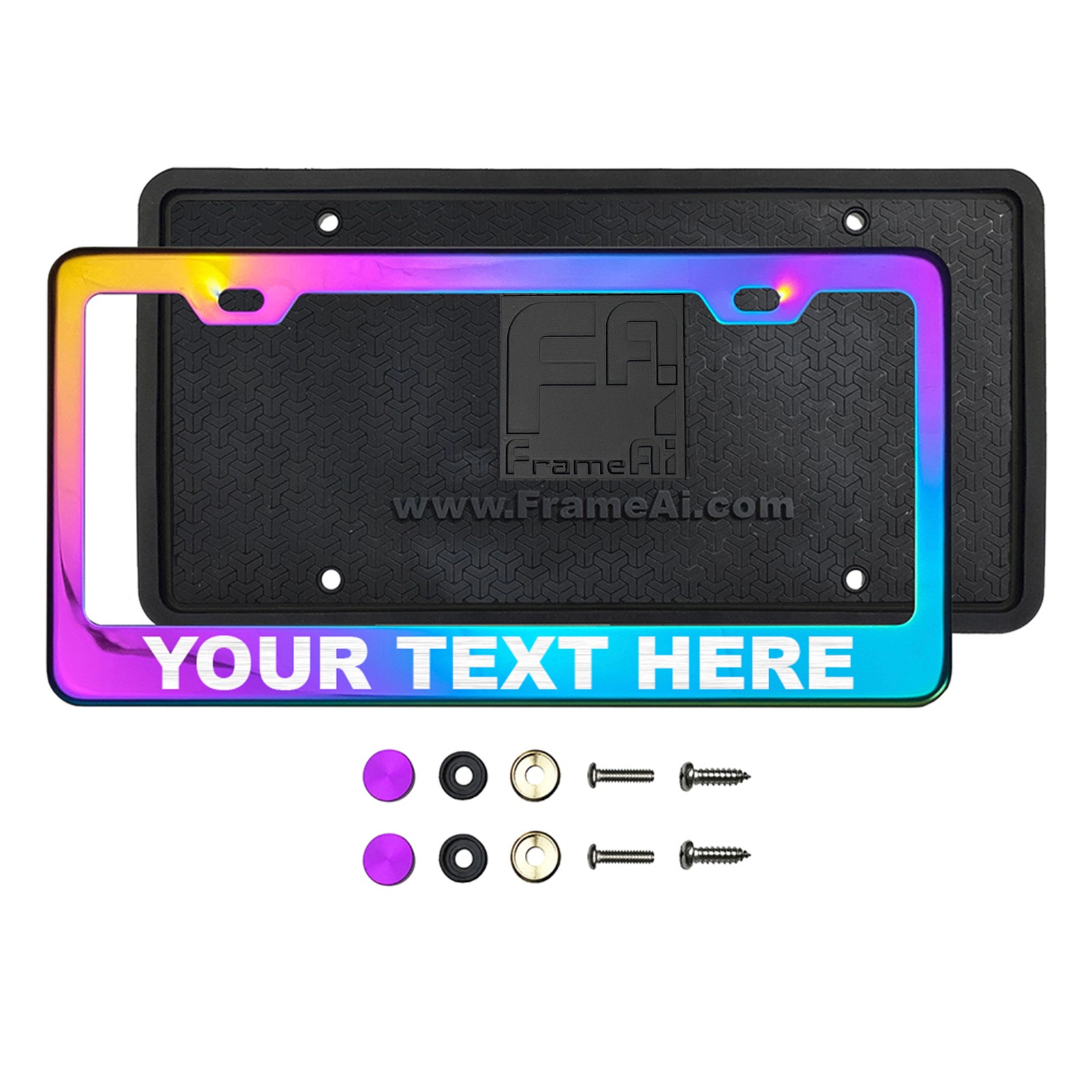 FrameAi Laser Etching Customize Neon Neo Chrome Mirror License Plate Frame Compatible with GMC Envoy T304 Stainless Steel + Metal Screw Caps