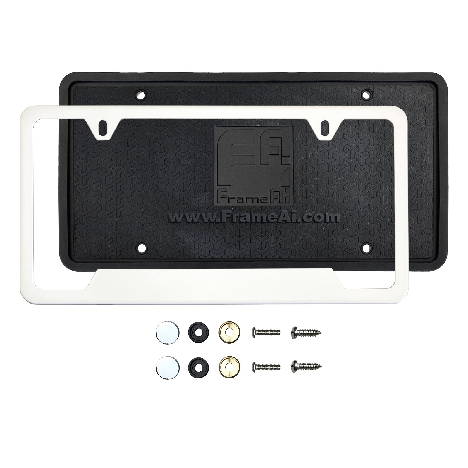 Silicone back Guard Bottom Cut Out license plate holder Matte Flat White License Plate Frame T304 Stainless Steel + Metal Screw Caps