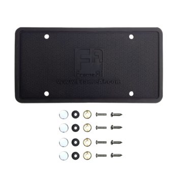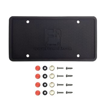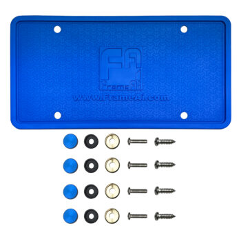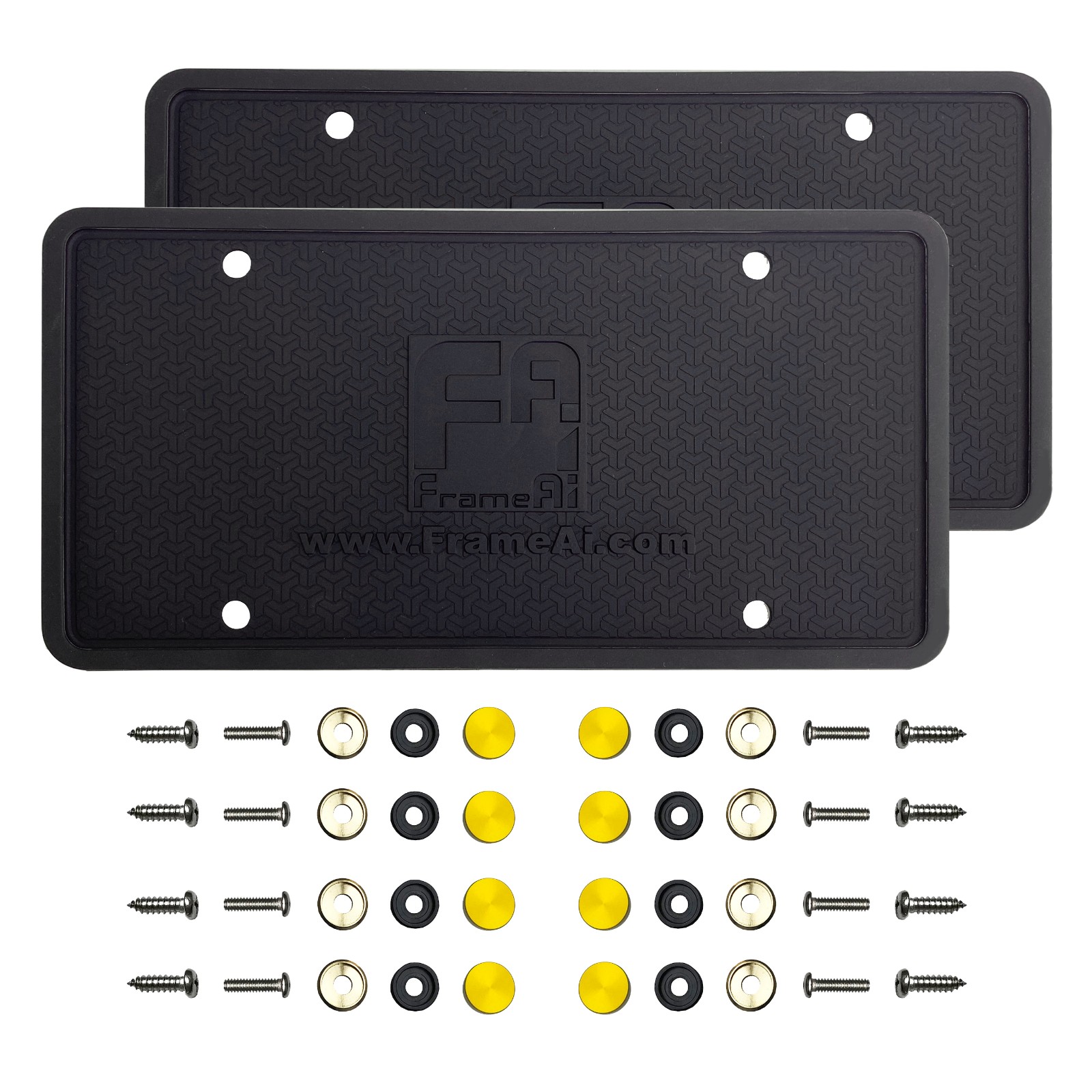 Two Silicone License Plate Frame Back Guard holder Rust-Proof Rattle-Proof Weather-Proof + Gold Aluminum Screw On Caps Hardware