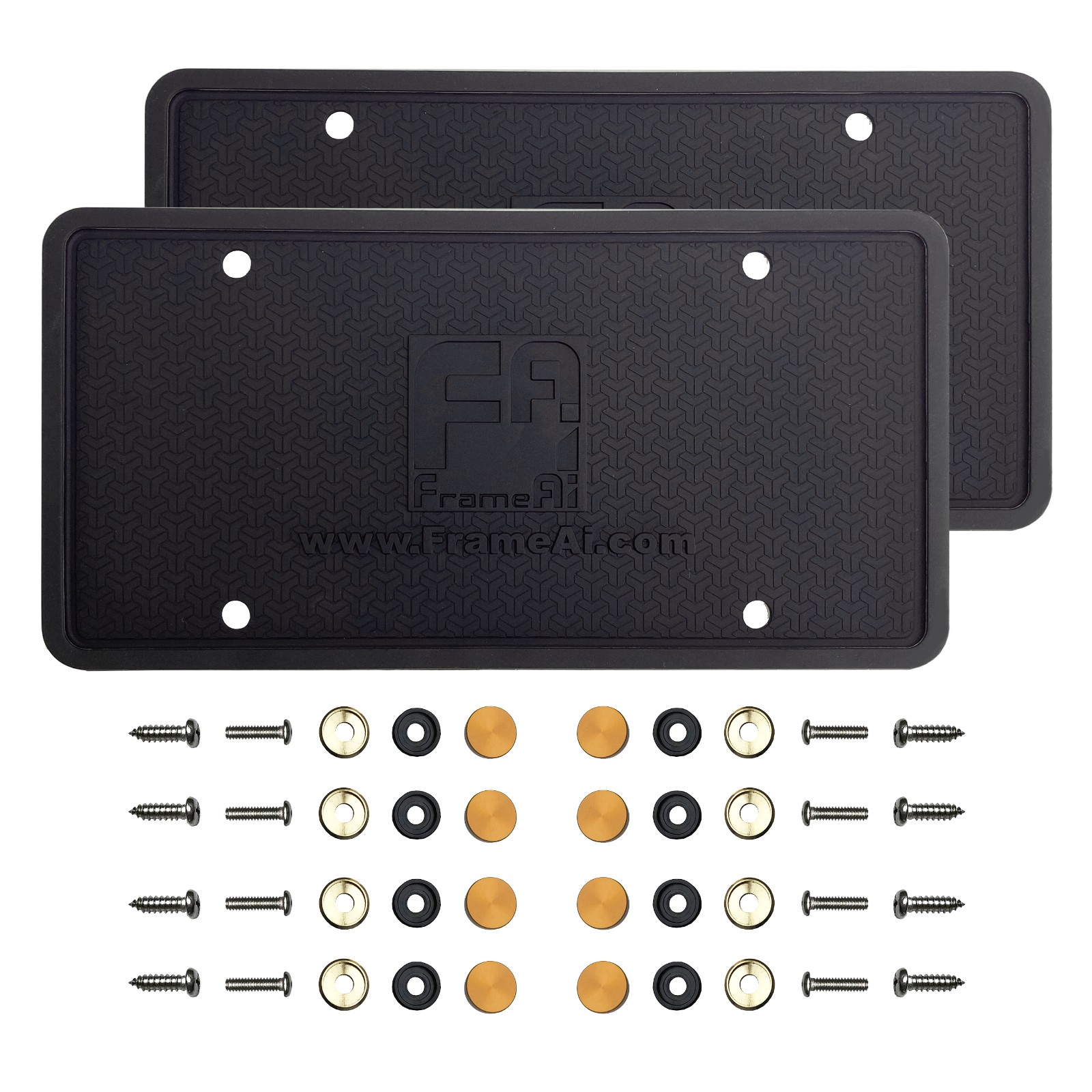Two Silicone License Plate Frame Back Guard holder Rust-Proof Rattle-Proof Weather-Proof + Rose Gold Aluminum Screw On Caps Hardware
